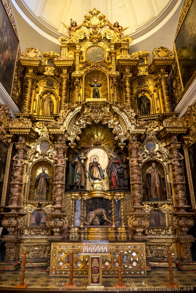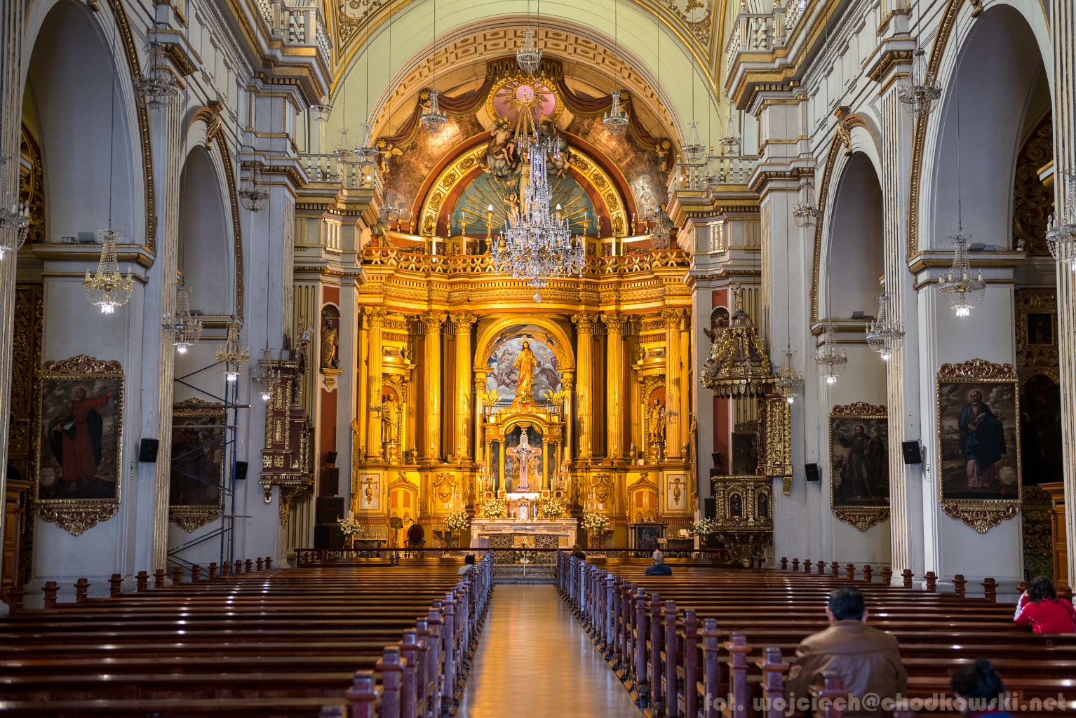 3 Iglesia de San Pedro. Wnętrze. Kościół ten od czasu wybudowania nigdy nie był przebudowany. Ołtarze są oryginalne. Lima, Peru. |