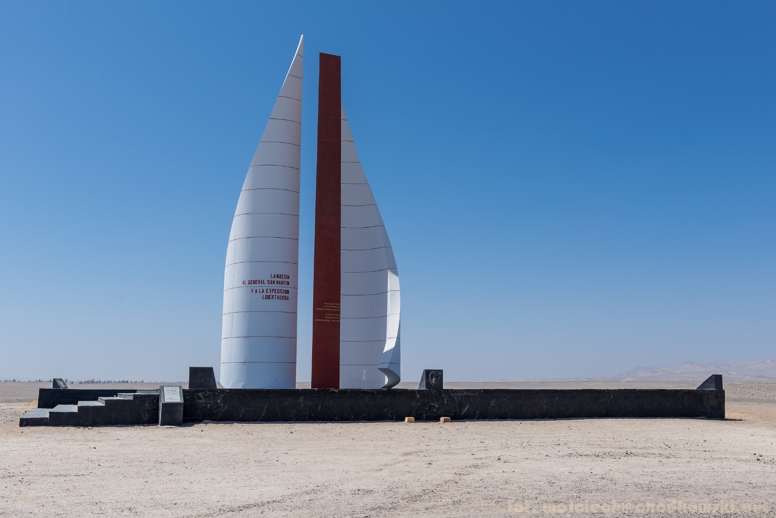 15 Monument upamiętniający przybycie generała Jose de San Martin z misja narodowowyzwoleńczą do portu w Pisco w 1820r. Paracas, Peru. |
