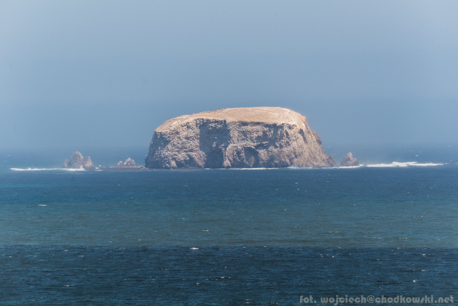 27 Widok na oddaloną wyspę skalną. Klifowe wybrzeże Pacyfiku - Park Narodowy Paracas. Peru. |