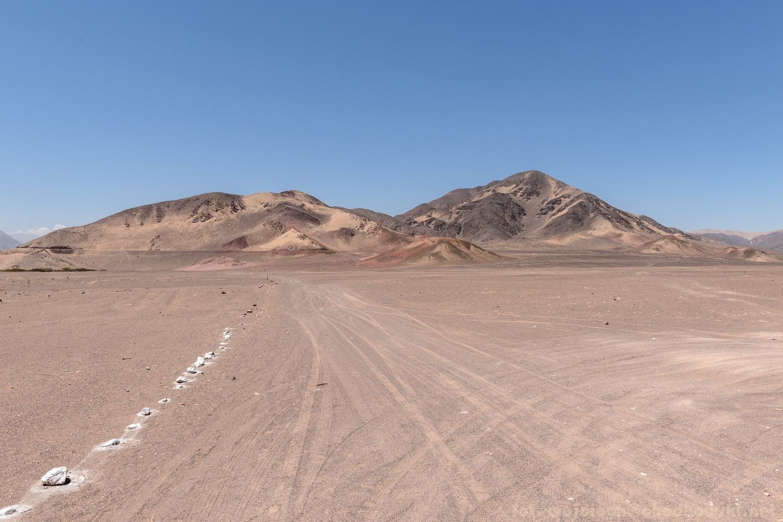 12 Droga przez pustynię do Nekropolii Chauchilla. Drogę tą wyznaczają jedynie kamienie ułożone po lewej stronie. Nazca, Peru. |