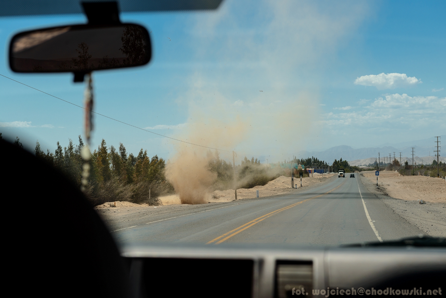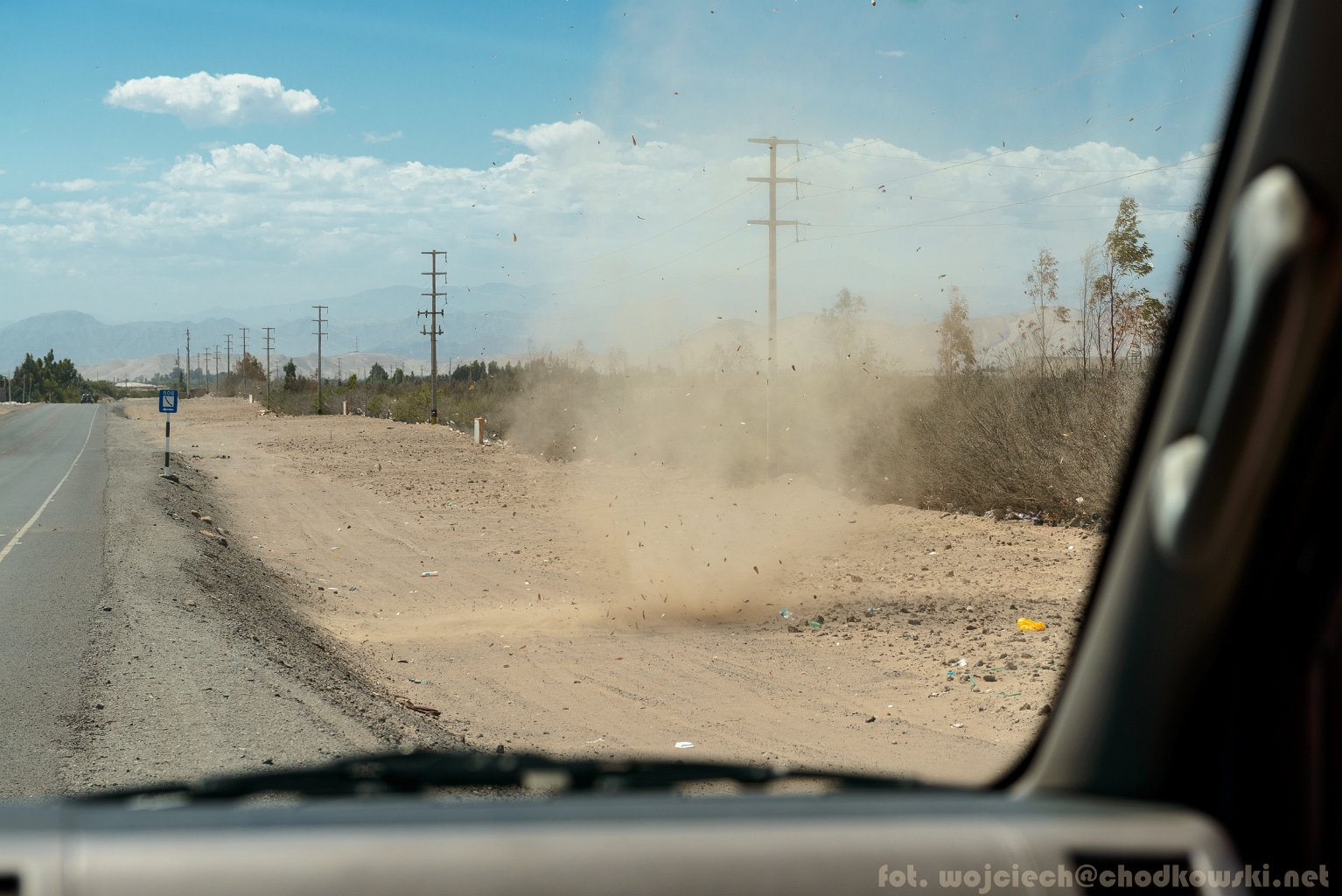 21 Mała piaskowa traba powietrzna, przechodząca przez szosę Panamericana. Nazca, Peru. |