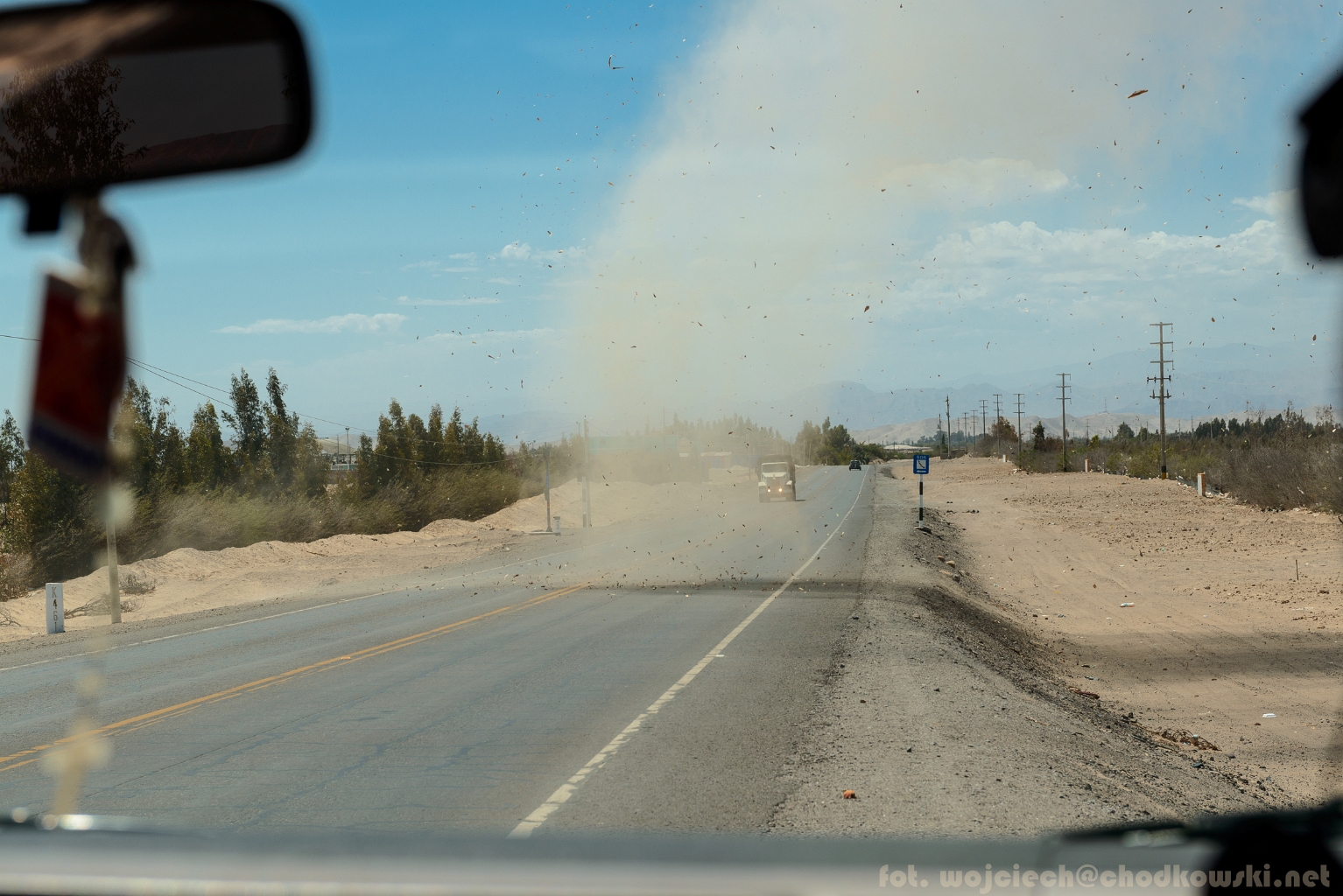 19 Mała piaskowa traba powietrzna, przechodząca przez szosę Panamericana. Nazca, Peru. |