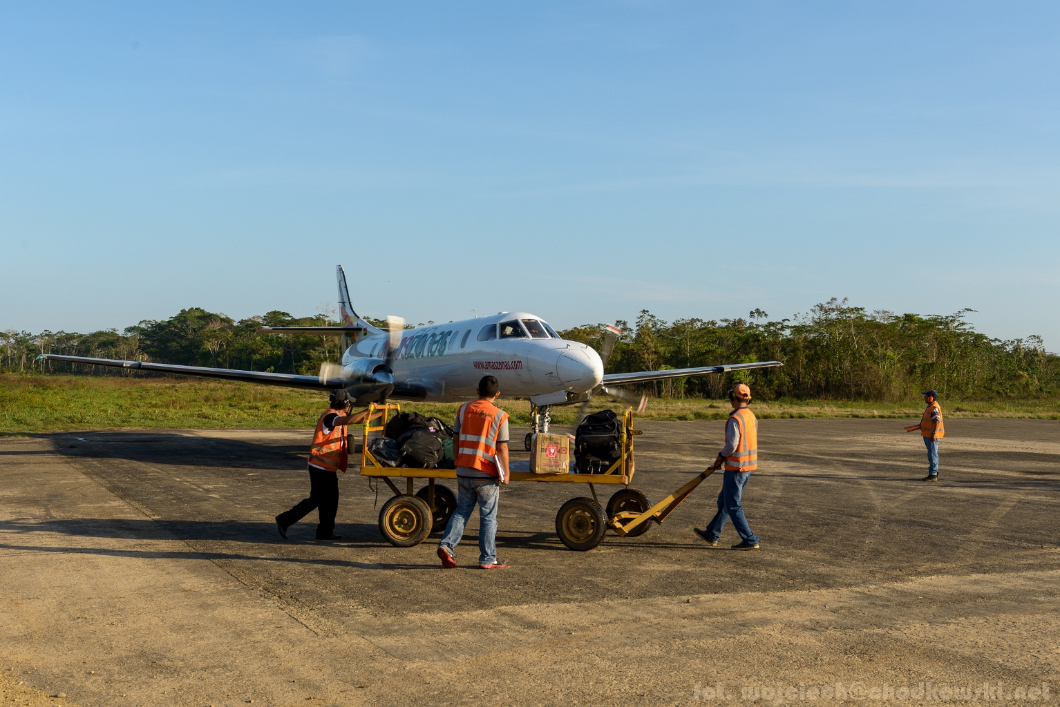 Załadunek bagażu do samolotu. Rurrenabaque. Boliwia.