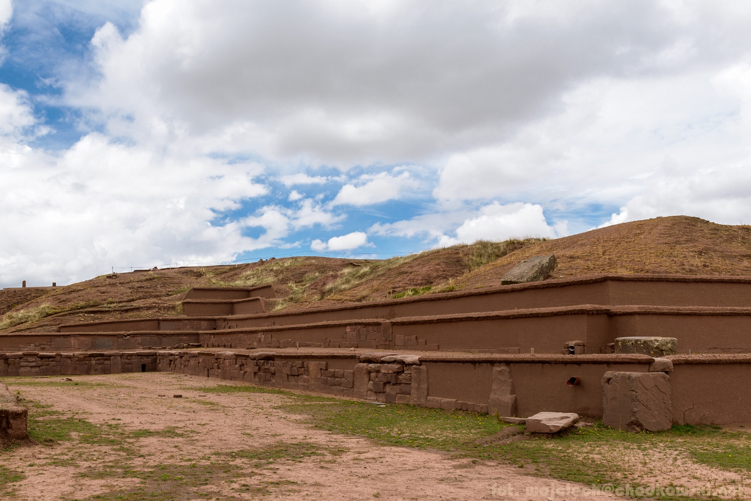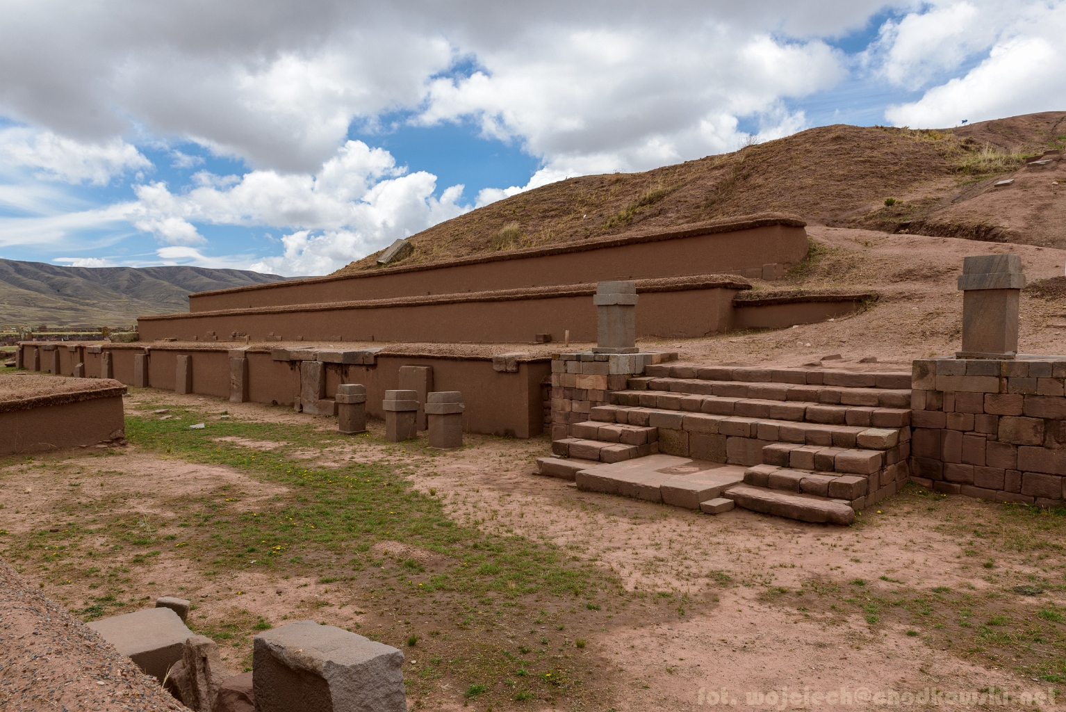 Widok na fragment piramidy Akapana. Tiwanaku. Boliwia.