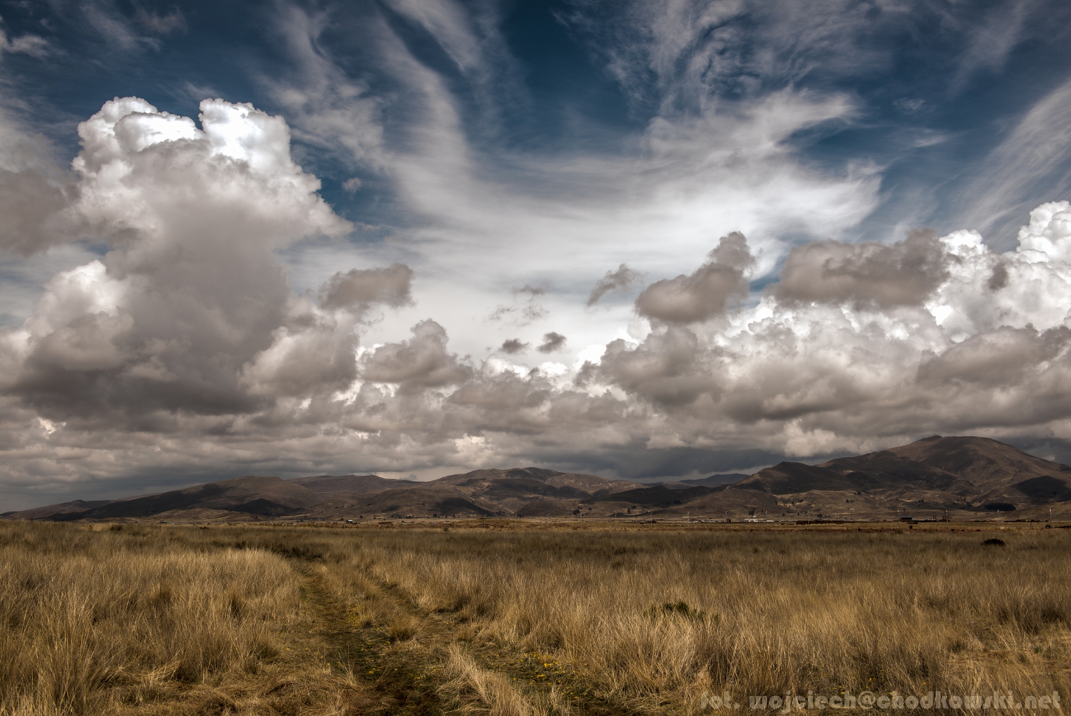 Widok w stronę gór. Tiwanaku. Boliwia.