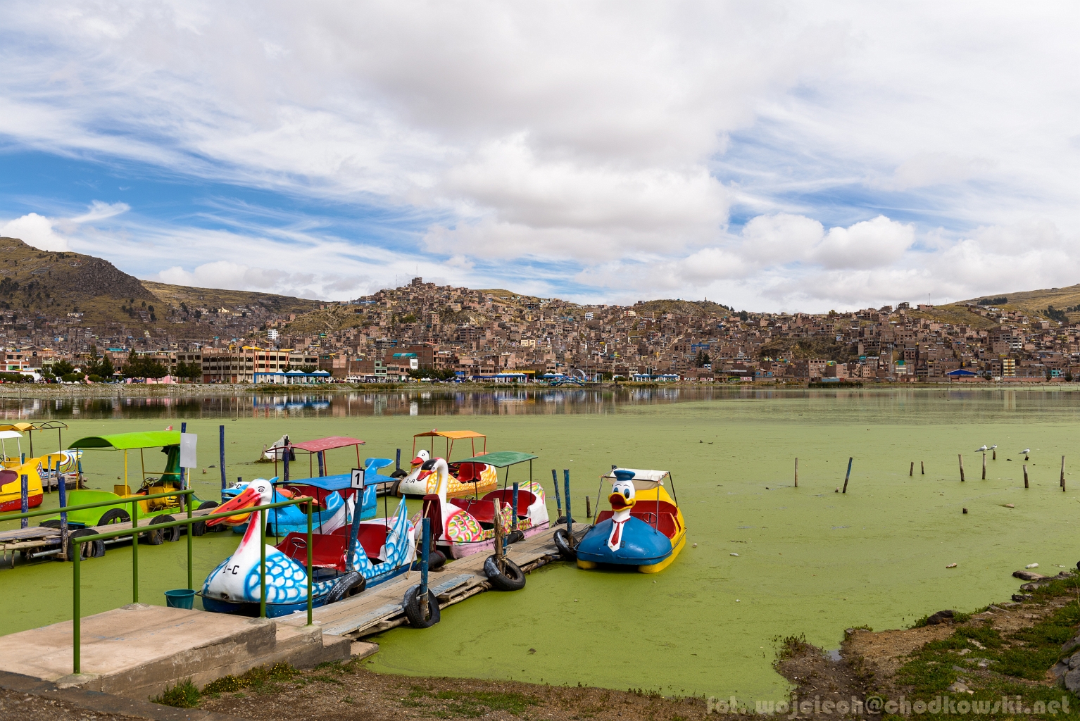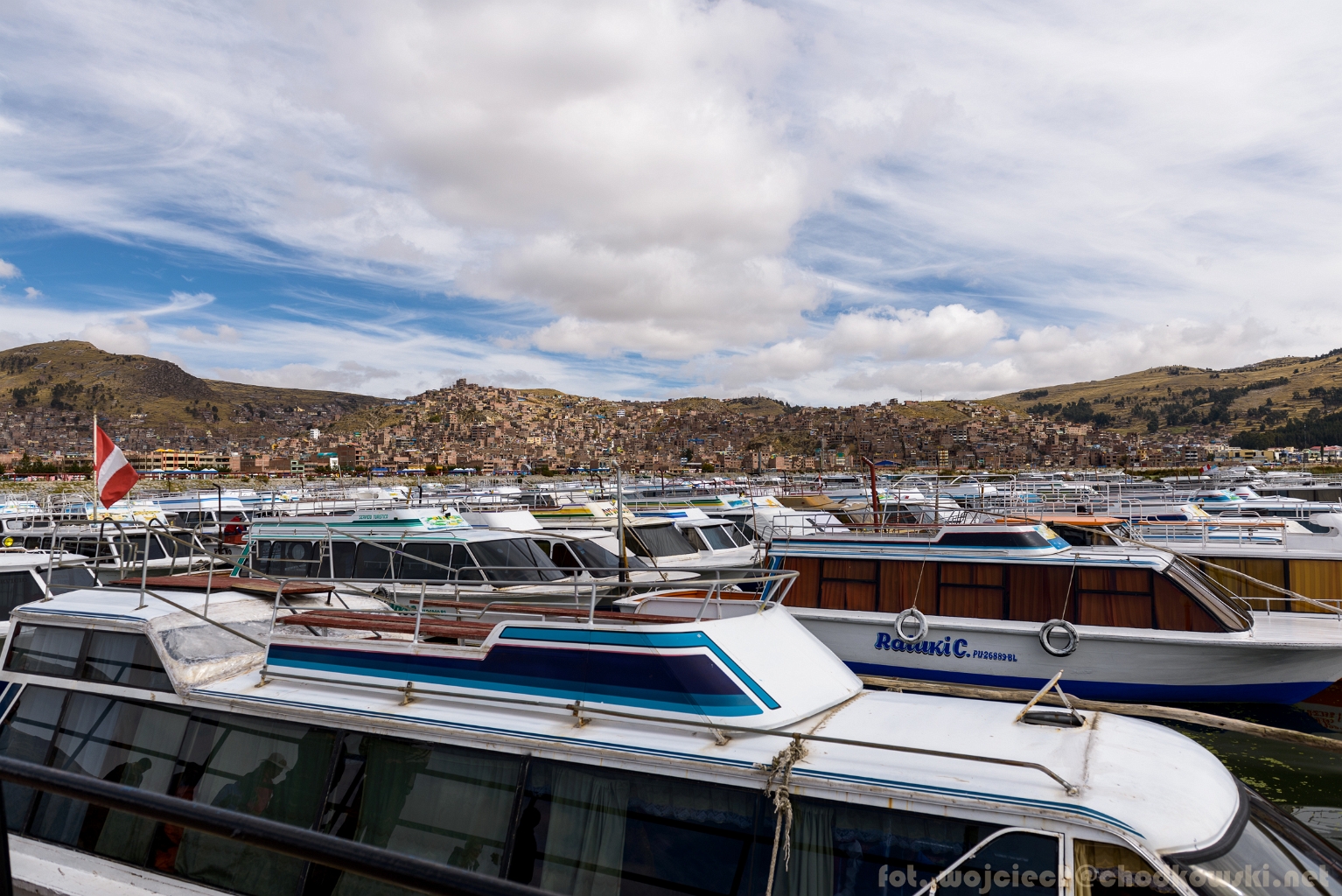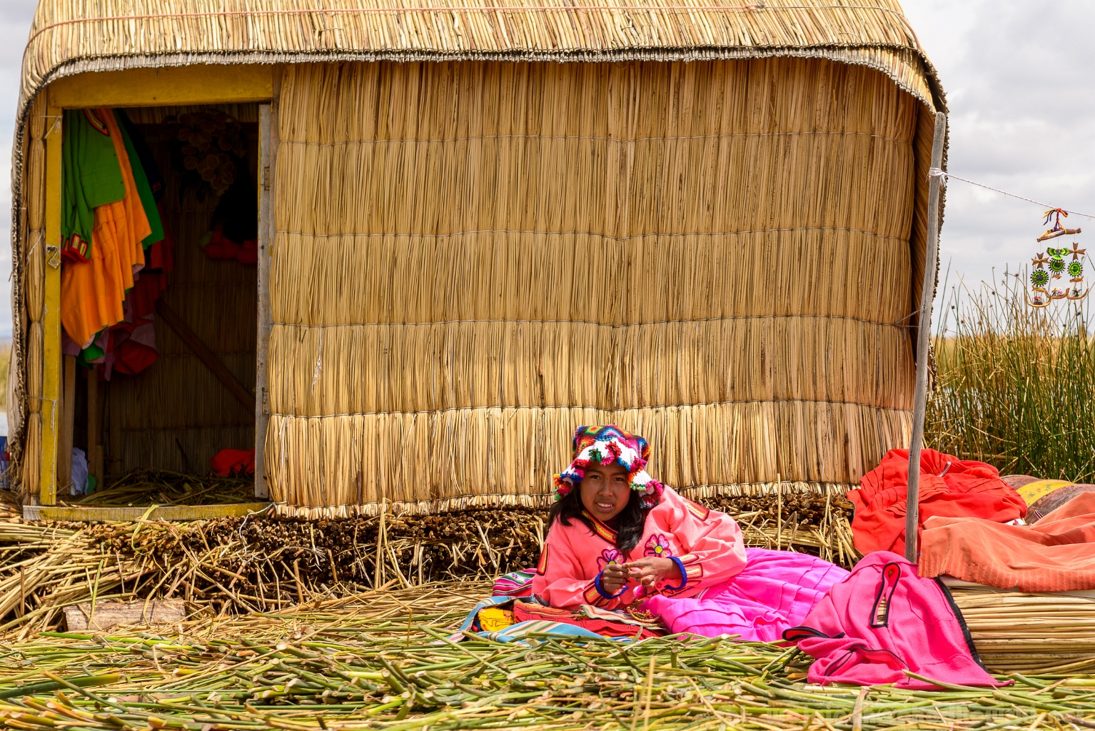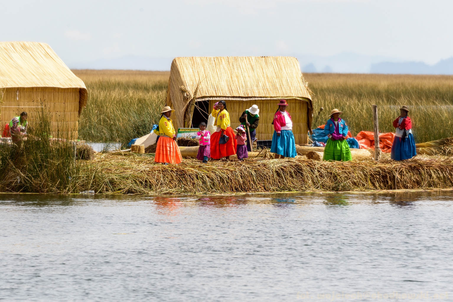 6 Pływające wyspy Uros na jeziorze Titicaca są zbudowane z trzciny. Kiedyś tubylcy tak żyli i mieszkali. Obecnie to tylko atrakcja turystyczna. Peru. |