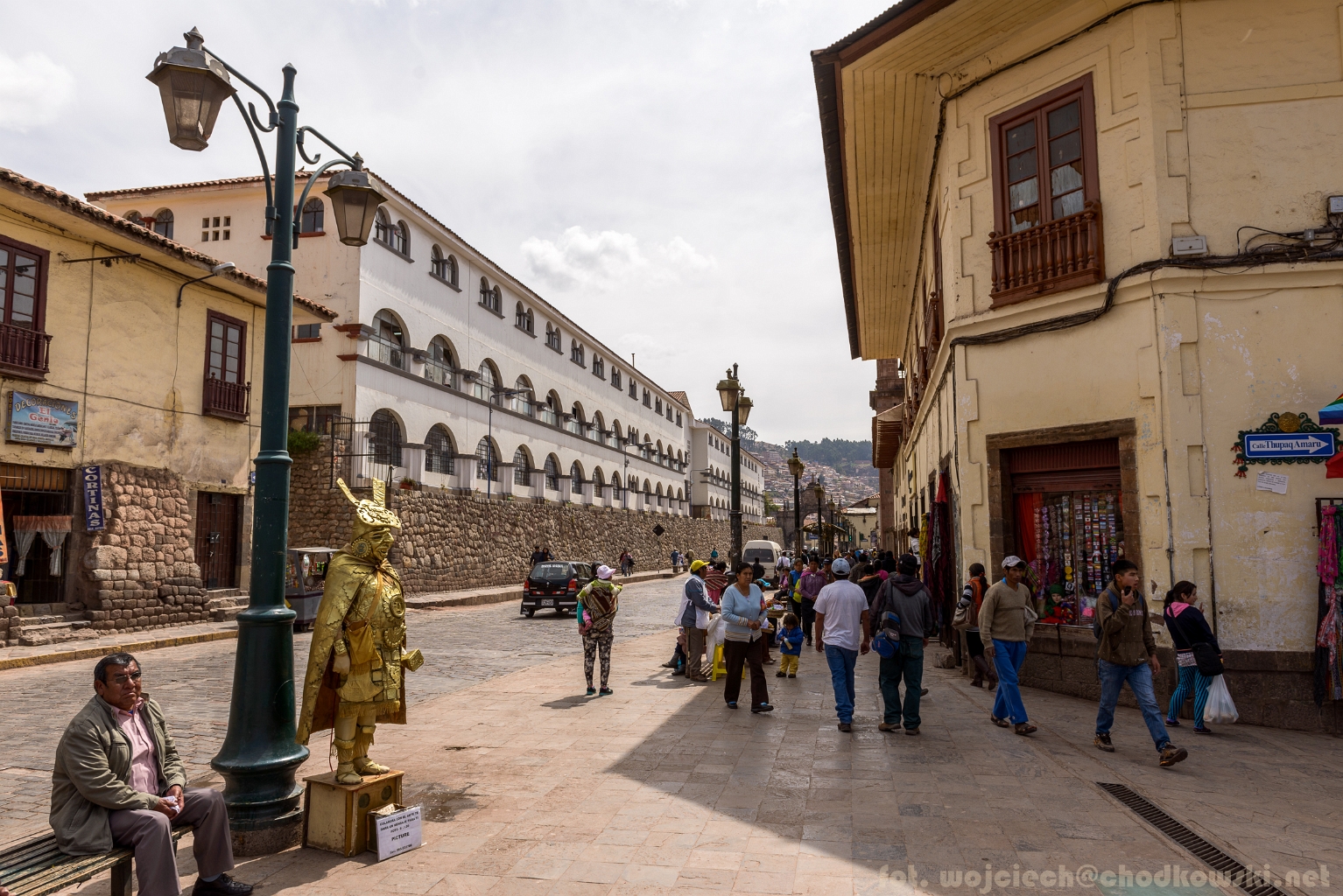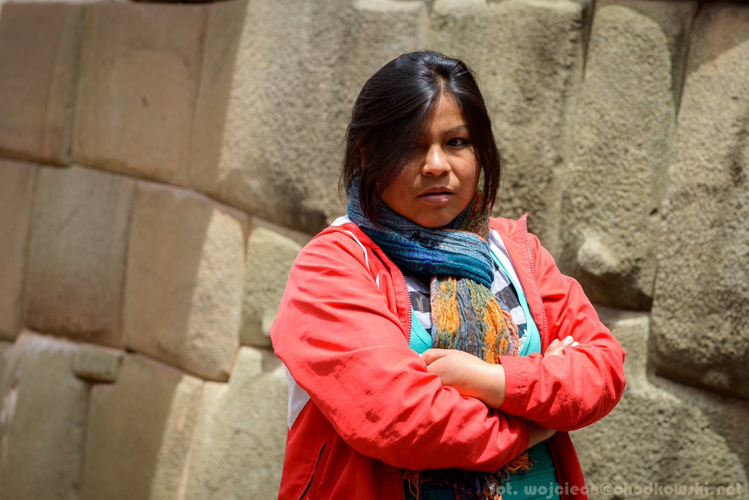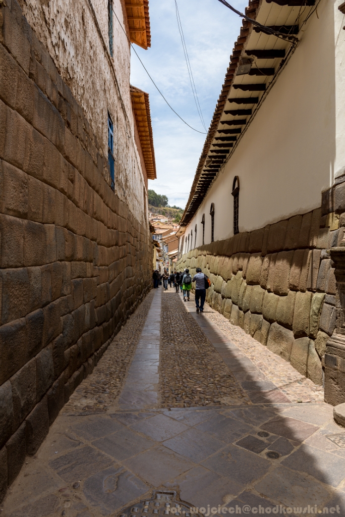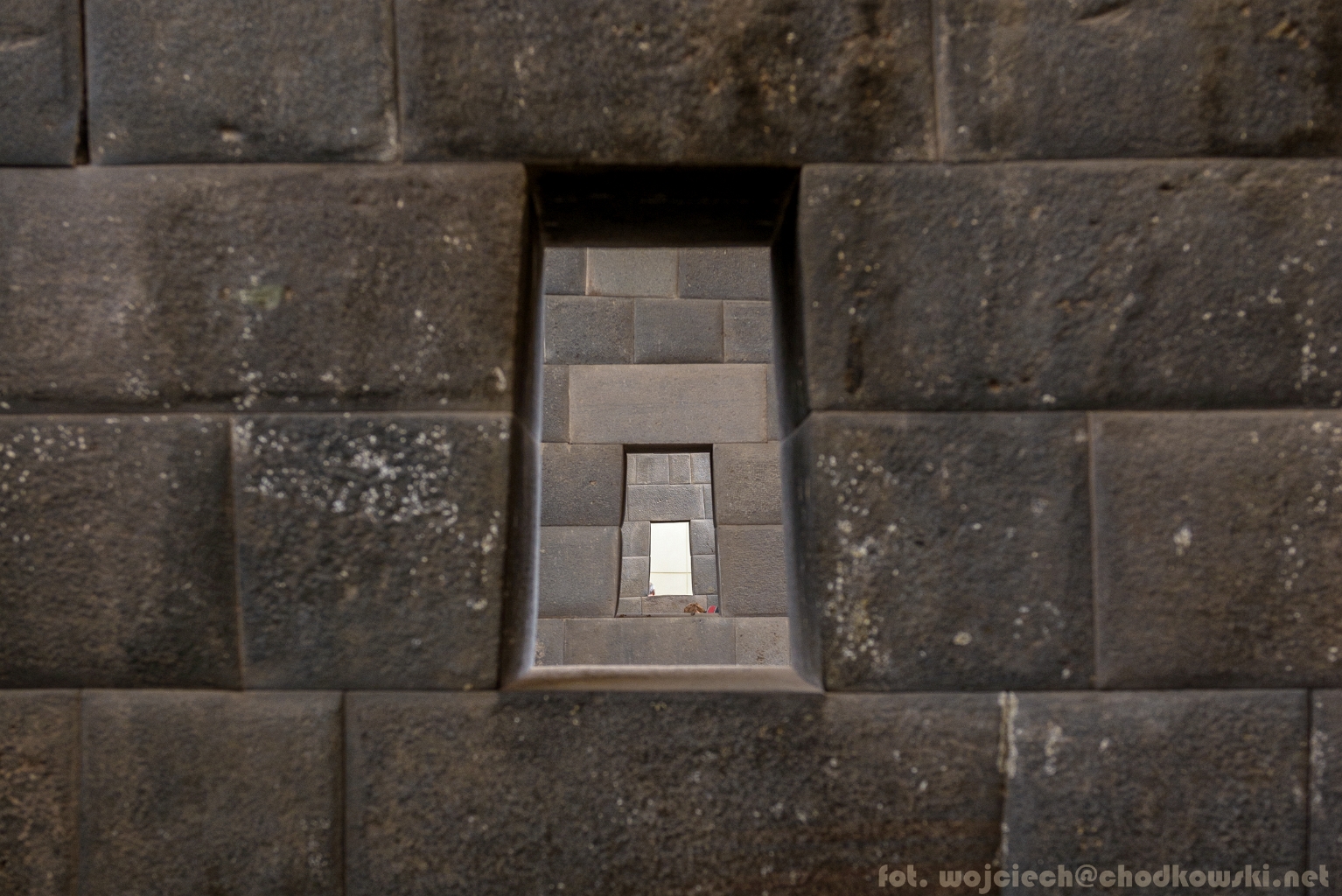 25 Qoricancha - do XVI w. jedna z najbogatszych świątyń inkaskich, ograbiona i przebudowana przez kolonistów hiszpańskich, zachowały się fundamenty i duże fragmenty ścian zbudowanych z kamienia przez Inków. Cuzco. Peru.