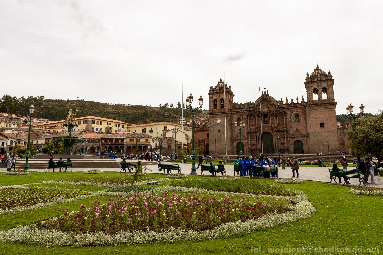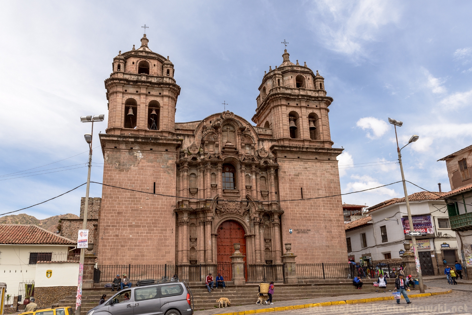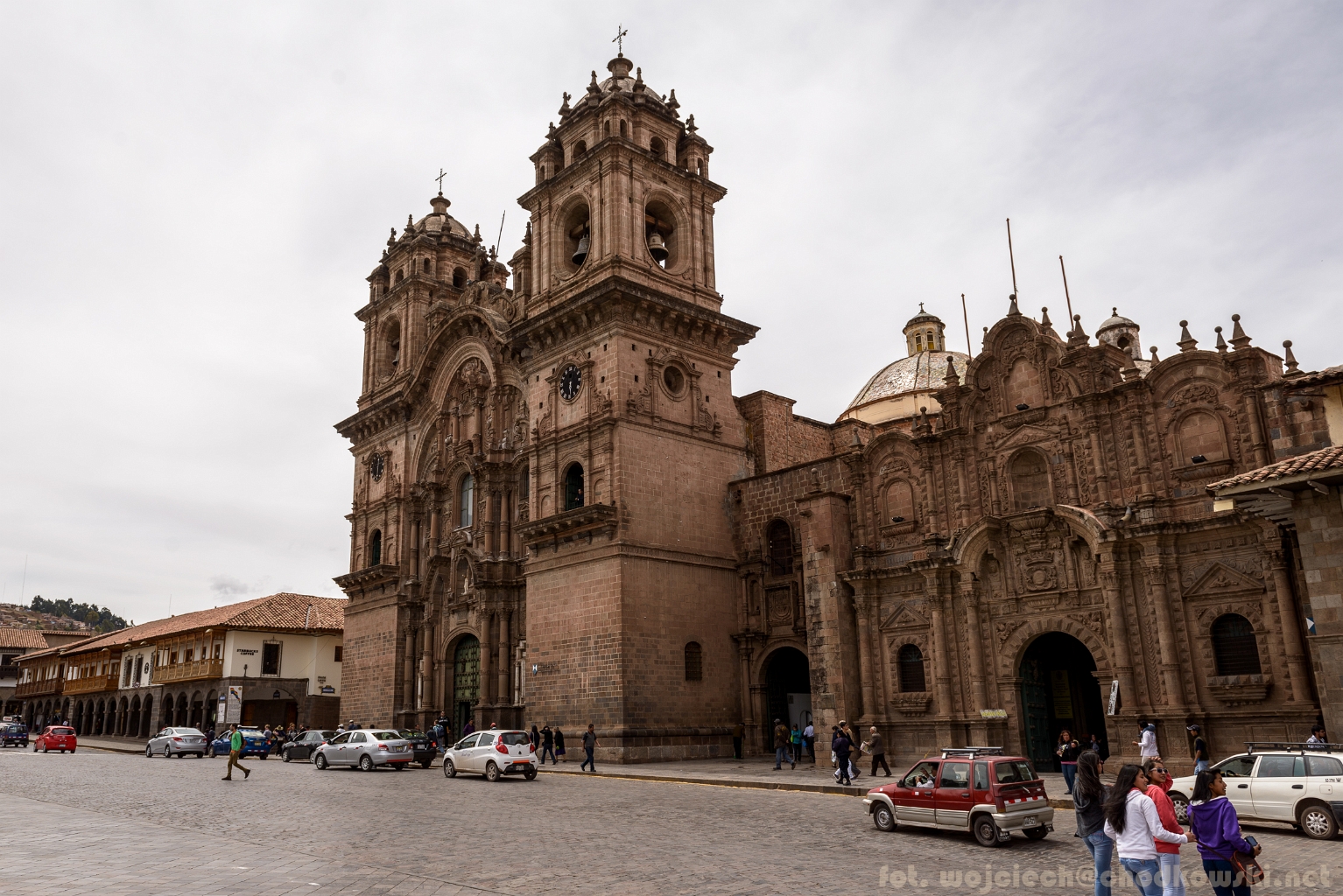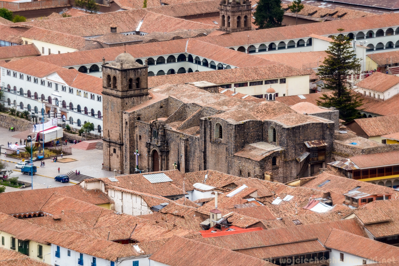 33 Zbiżenie (widok z Saqsaywaman) na kościół Iglesia La Compañia de Jesús na placu Plaza de Armas. Cuzco. Peru.