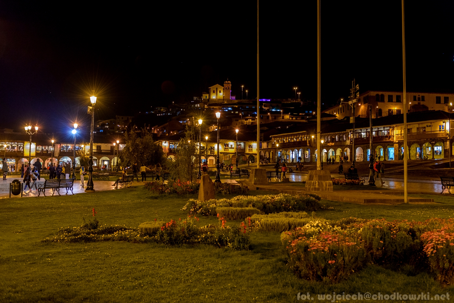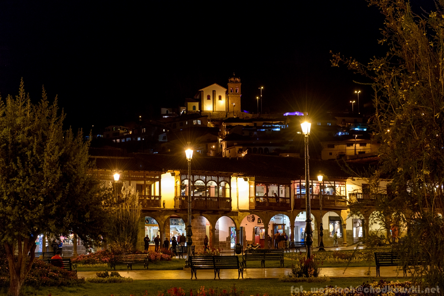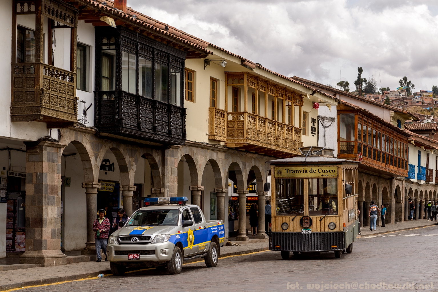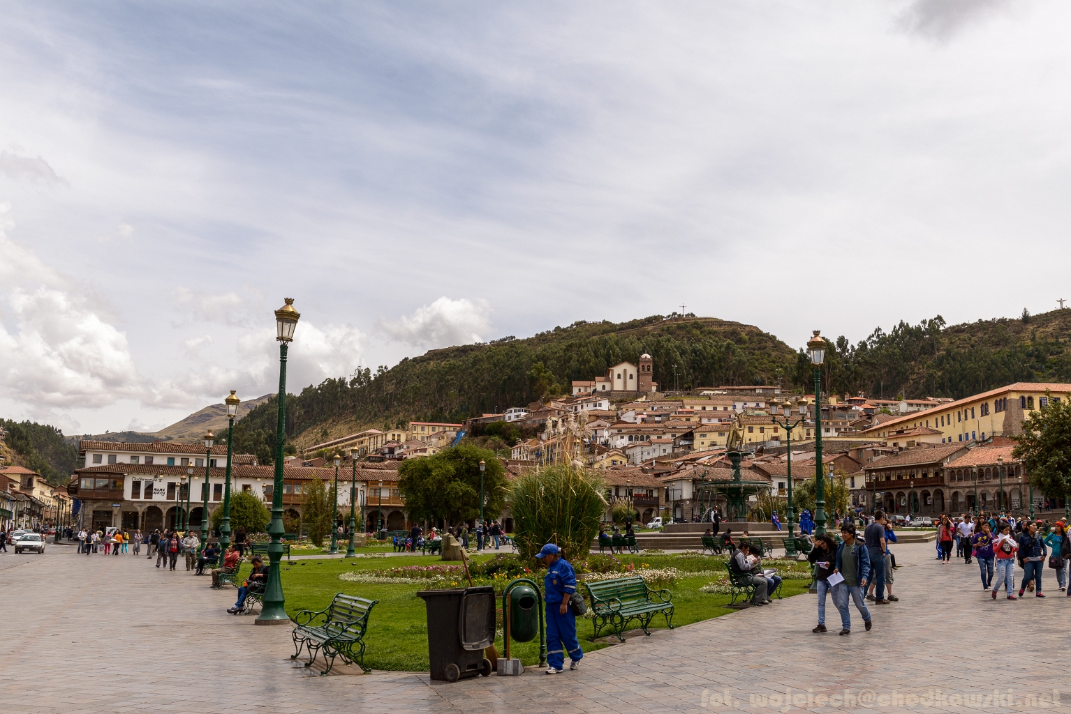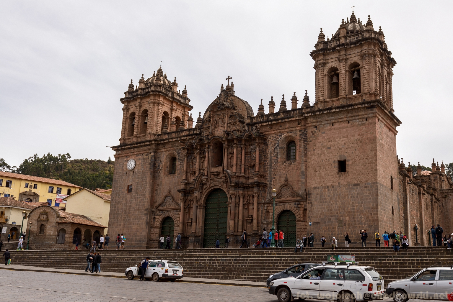 33 Zbiżenie (widok z Saqsaywaman) na kościół Iglesia La Compañia de Jesús na placu Plaza de Armas. Cuzco. Peru.