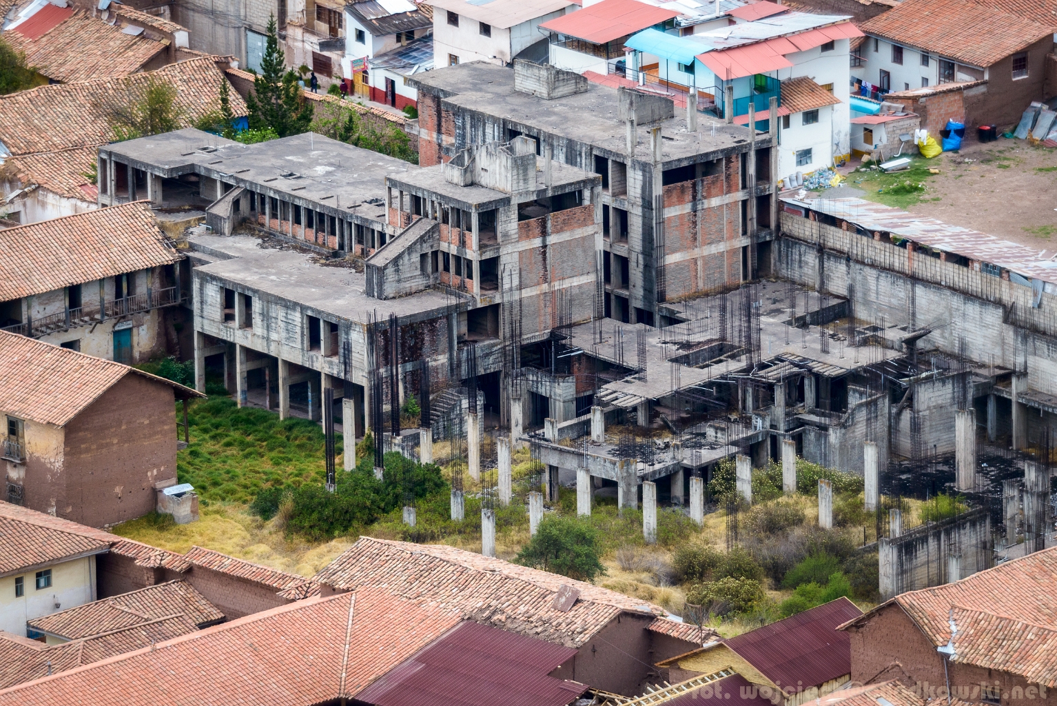 32 Zbliżenie (widok z Saqsaywaman) niedokończonego budynku w Cuzco. Peru.