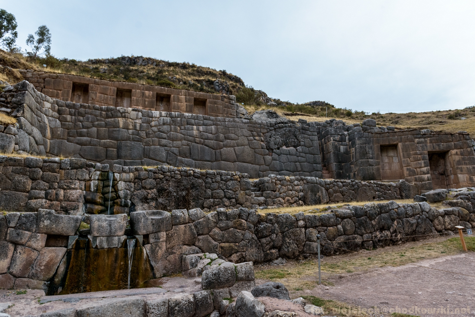 36 Tambomachay - pozostałości inkaskiej budowli sakralnej, prawdopodobnie związanej z kultem wody. Nieznane jest źródło wody spływającej przez piętra budowli od czasów jej powstania. Peru.